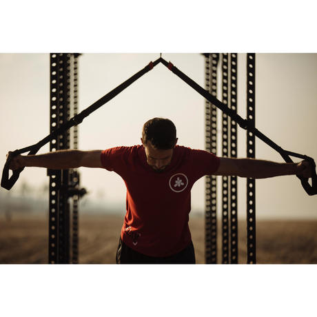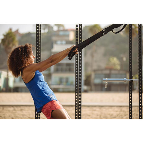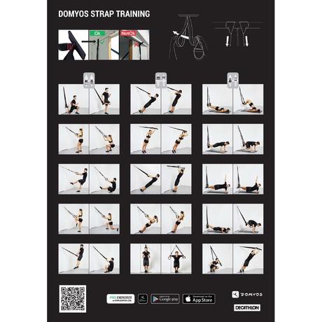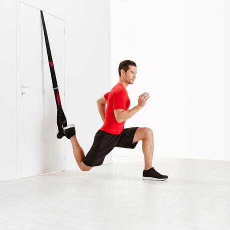 Con lo Strap training di Domyos si lavora con il proprio peso e si aumenta l'intensità e l'efficacia degli esercizi di rinforzo muscolare.