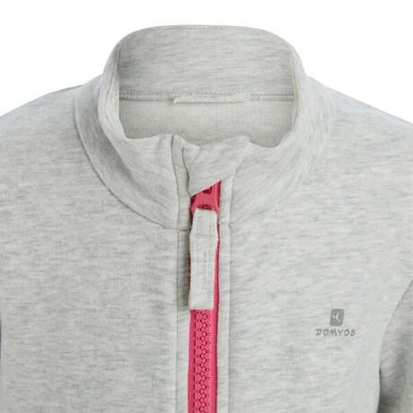 Felpa leggera con interno in bouclé sottile. Abbastanza caldo per quando fa fresco. Collo alto, senza cappuccio. Apertura e chiusura adatte per i bambini.