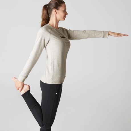 Felpa donna gym stretching 500 beige melange
