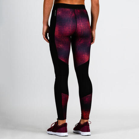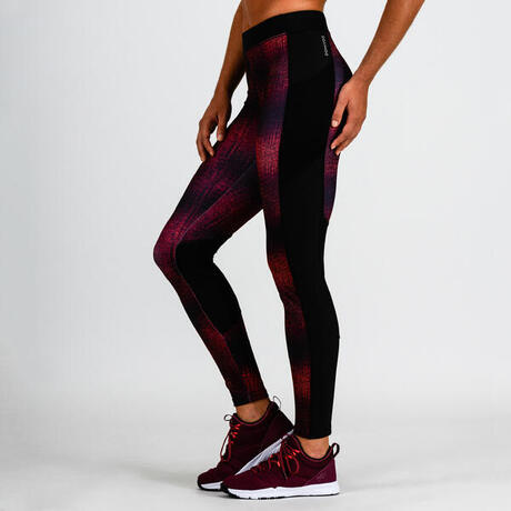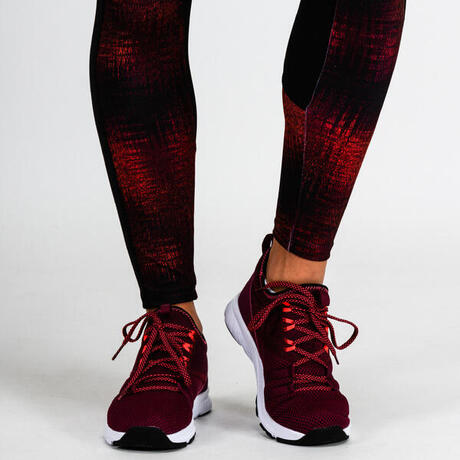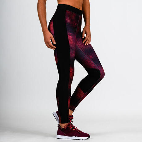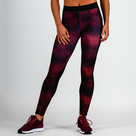Leggings donna cardio fitness 120 bordeaux con stampa