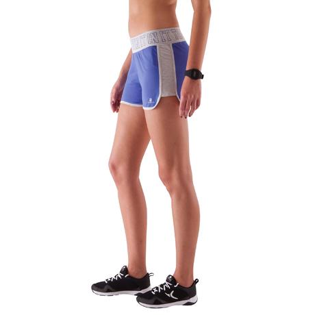 Pantaloncini donna azzurri con cintura in contrasto grigia