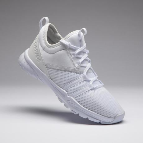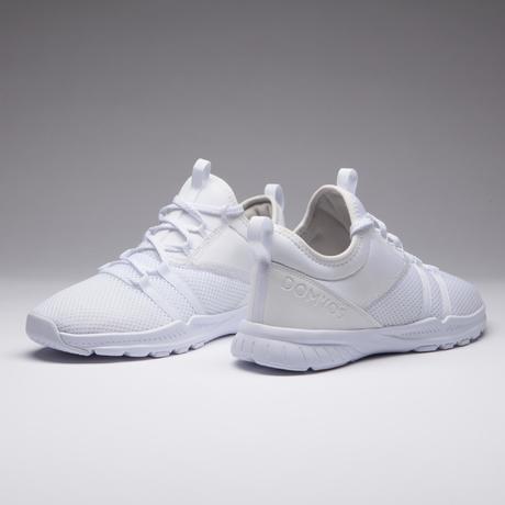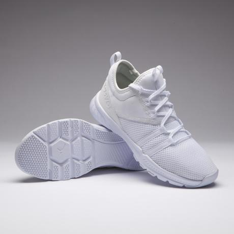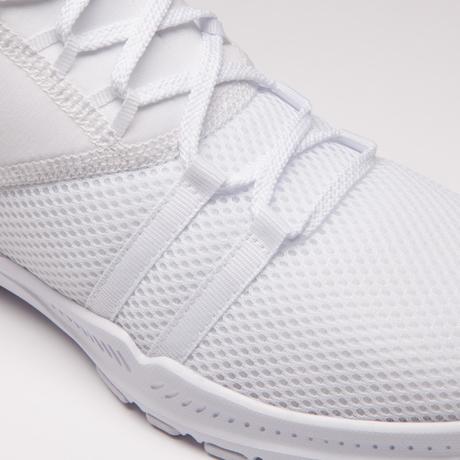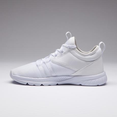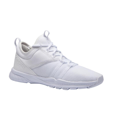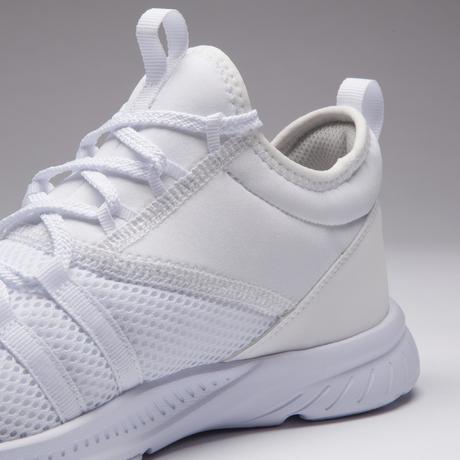 Le scarpe cardio fitness 120 mid da donna hanno il collo alto per assicurare un sostegno morbido.