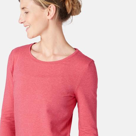 T-shirt donna gym pilates 100 rosa scuro melange