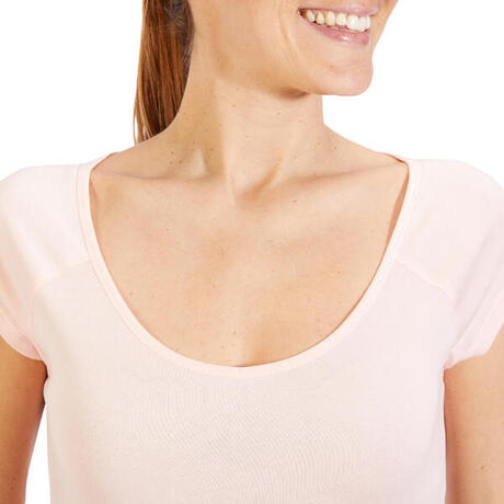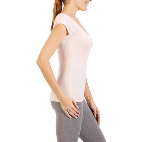 T-shirt donna slim gym pilates 500 rosa chiaro