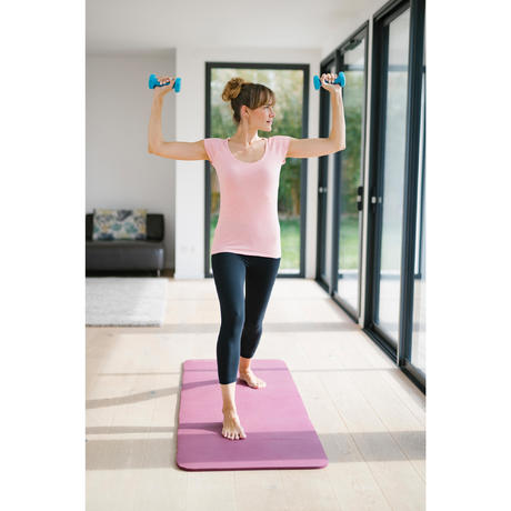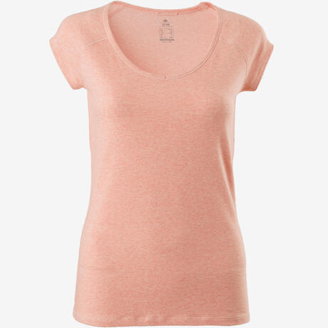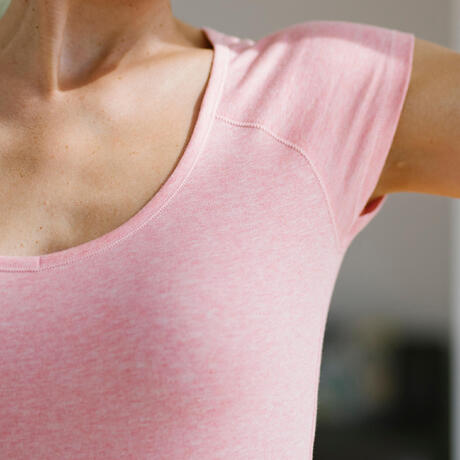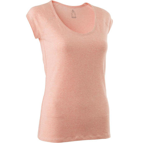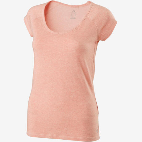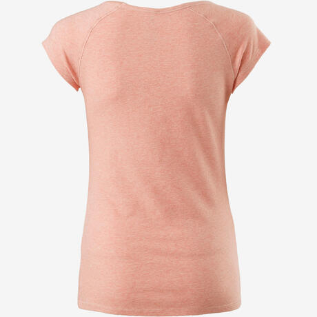 T-shirt donna slim gym pilates 500 rosa chiaro melange