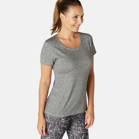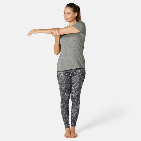 T-shirt regular donna gym Pilates 500 grigia con stampa