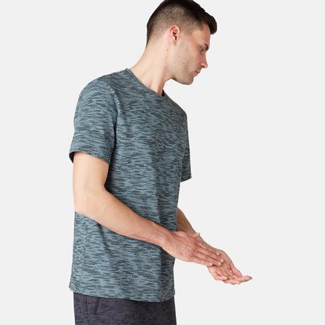 T-shirt regular uomo gym Pilates 500 grigio scuro con stampa