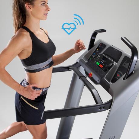 Il tapis roulant CLIMB by Domyos è venduto con una fascia toracica che permette di seguire in modo affidabile le pulsazioni cardiache durante gli allenamenti.