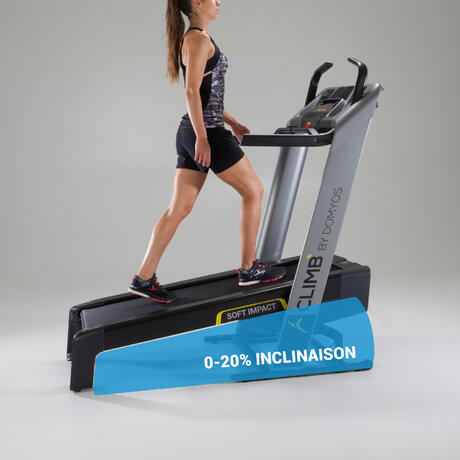 Il tapis roulant CLIMB by Domyos è l'unico tapis roulant della gamma Domyos che permette di allenarsi con un'inclinazione fino al 20%!