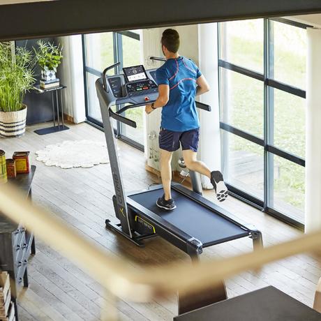 Utilisé pour mes entraînements trails les jours où je n'ai pas la possibilité de sortir en extérieur. La simulation de dénivelé est un vrai plus. Le tapis est fiable, peu bruyant, souple à l'impact. Un vrai plaisir !