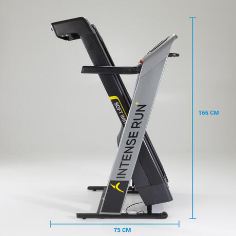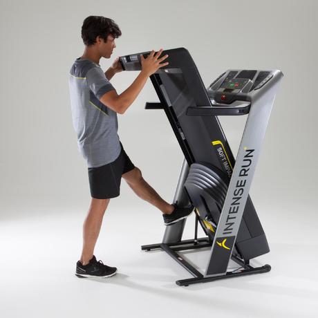 Il tapis roulant INTENSE RUN BY DOMYOS è pieghevole, per permetterti di guadagnare spazio quando non lo usi. Il volume è stato studiato dai nostri ingegneri per garantire un buon compromesso tra compattezza e stabilità.